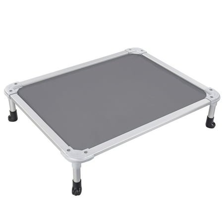 Chew Proof Elevated Dog Bed Cot. Composed of Rustless Aluminum Frame and Better Textilene Mesh Fabric. Also, all the edges of the Dog Bed Mat are wrapped directly inside in Frame, Indestructible & Nowhere to chew. Durable Design for Better Life. Size: 42″L x 30″W x 7″H (107x76x18 cm). Upgraded material and structure offer strong stability, Veehoo Raised dog bed can hold a maximum weight of 150 pounds (68kg), say goodbye to the fear of a sudden bed collapse. Floor No More (7″ Off the Ground). The bed mat crafted of Textilene mesh fabric, features sturdy and breathability. Sleeping with an elevated dog bed is more comfortable, cleaner, dryer, and healthier compared to the ground. Easy to Clean. For the pet hair, dirt, grime (or other stains brought by your dog from outside lawn), simply hose off with water and allow to dry. Besides, you can also wipe them clean with a wet towel Easy to Assemble. Screws and hex tool are included. And more, some accessories have been assembled and can be installed directly. Portable and Perfect for indoor, outdoor, picnic, camping, training… Quality sleep on the go!