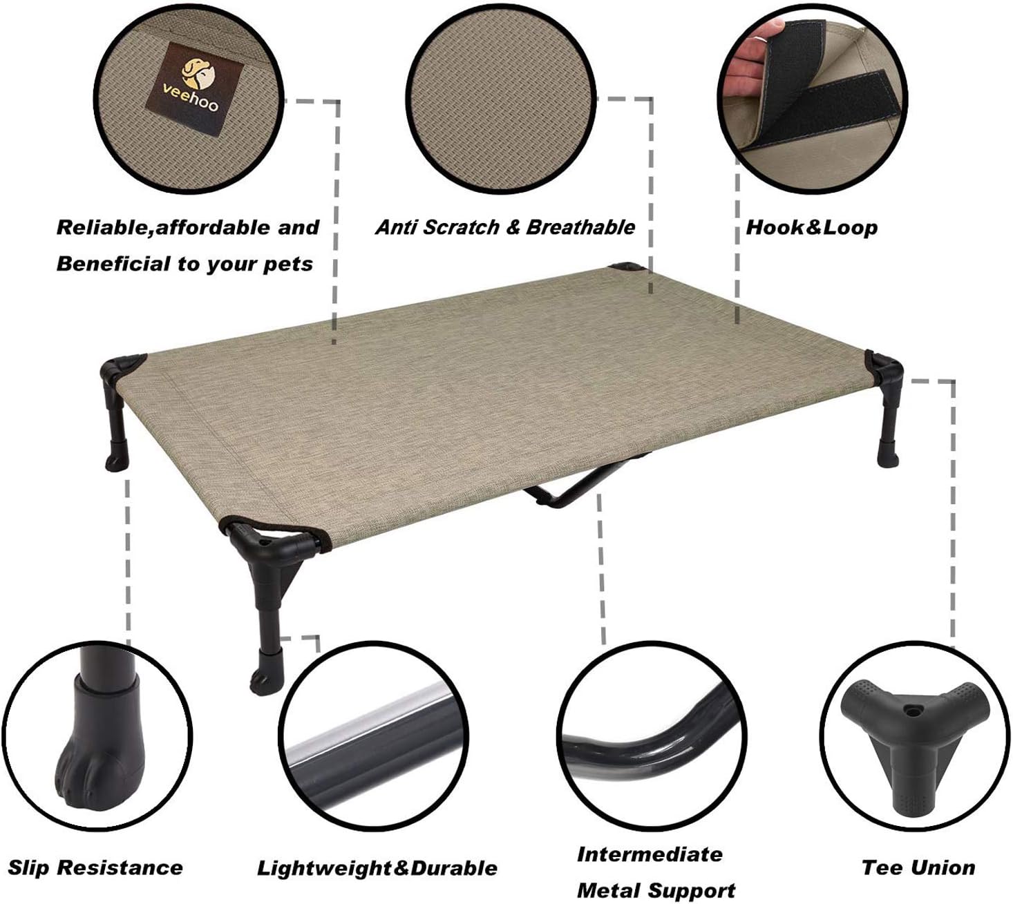 Stay Cool Ever! Crafted of mesh fabric in the center, our bed allows air to flow, keeping them cool while they relax in the heat. Textilene fabric features heat-resistance, sturdy, and breathability.