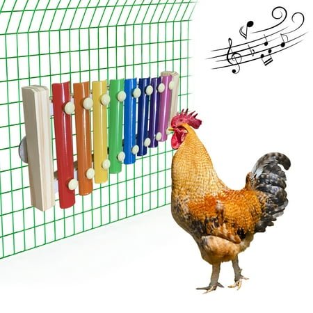 Funny Chicken Toy: The xylophone toy is specially designed for chickens. Each Xylophone was fitted with a built-in bolt, two gaskets, and a metal wing nut so that it can be mounted on the inside or outside of the chicken cage, no extra tool is required for installation. You can also just put it on the ground, it will be tilted at an Angle for the chicken to peck at. When your chickens peck at the chicken xylophone toy, it makes beautiful sounds Size and Material: Wood base and metal keys. The body of the xylophone is 24 * 12 * 3 cm / 9.4 * 4.7 * 1.2 inches. Perfect size for all breeds of chickens Function: Chickens are always attracted by crisp sounds and bright colors. They will explore toys with their beaks and claws. Your chicken will enjoy and love these chicken toys. It will provide fun for chickens by pecking it and relieve their boredom