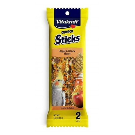 Vitakraft Crunch Sticks keep cockatiels excited for snack time. Each stick features a tasty blend of seeds, honey, and fruit, triple baked for maximum crunch with a natural wood stick at the center for extended chewing. * Tasty blend of seeds, honey, and apple * Triple baked for maximum crunch & taste * Natural wood stick center provides a long-lasting chew toy * Vitamin-fortified to keep pets physically active Feeding Guide: Hang one Crunch Stick inside your cockatiels habitat using the attached clip holder. Fresh, clean water should be available to your bird at all times. Ingredients: Wheat, Ground Wheat, Milo, Oats, Yellow Millet, Cracked Corn, Corn Starch, Flaked Oats, Ground Corn, Oat Groats, Dehydrated Dates, Dried Carob, Dehydrated Apple, Dehydrated Apricots, Calcium Carbonate, Dehydrated Mountain Ash Berries, Rice Flour, Calcium Propionate (a Preservative), Honey, Wheat Germ Meal, Lecithin, Dehydrated Carrots, Salt, Dehydrated Lemon, Turmeric Color, Color Added (Yellow 5, Yellow 6), Vegetable Oil, Vitamin A Supplement, Vitamin D3 Supplement, Vitamin E Supplement, Riboflavin Supplement, Pyridoxine Hydrochloride, Vitamin B12 Supplement. Guaranteed Analysis: Crude Protein (min) – 8.9% Crude Fat (min) – 1.0% Crude Fiber (max) – 4.1% Moisture (max) – 14.0% Vitamin A (min) – 7,914 IU/kg Vitamin D3 (min) – 791 IU/kg
