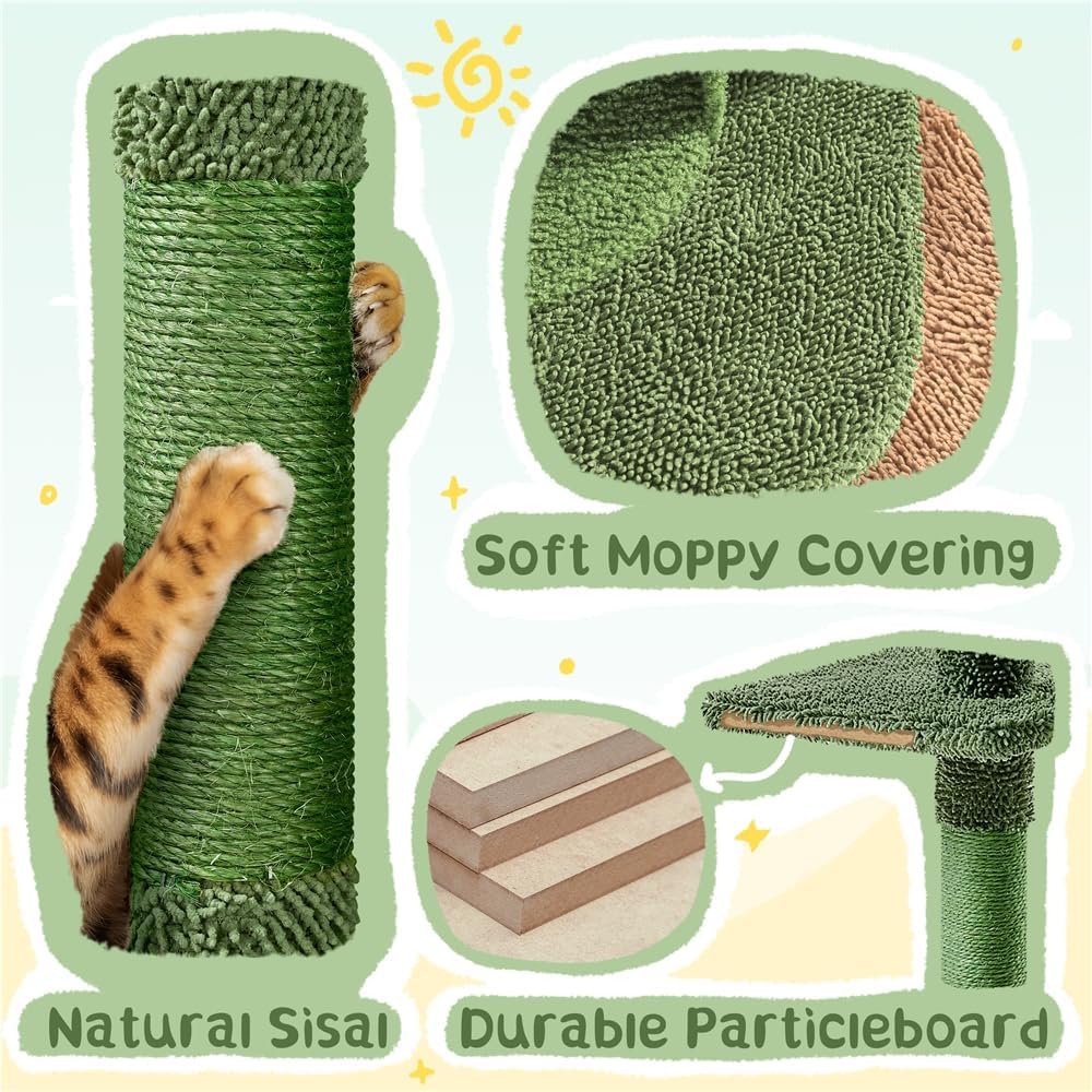 ADORABLE CACTUS-SHAPED DESIGN:Inspired by the cactus, our Cat Tree has a unique and adorable look that will add a playful and charming touch to your home. Wrapped in a soft green and brown fabric that closely resembles a real cactus, it will breathe freshness into your living space