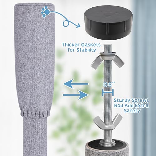 PORTABLE AND NO DAMAGE TO CEILING: The two top posts of this height-adjustable cat tree snugly fit against the ceiling without the need to drill the wall. This convenient design ensures a perfect fit while allowing you to effortlessly relocate it whenever you desire