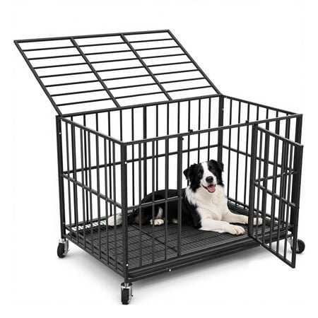 🐶【Chew-Resistant & Non-Toxic Build】Constructed with reinforced steel and a pet-safe protective coating, this crate effectively resists biting, scratching, and daily wear. 🐶【Removable & Easy-Clean Tray】The slide-out tray can be quickly removed for hassle-free cleaning and maintenance. 🐶【Dual-Door Secure Access】Both the front and top doors feature locking mechanisms for safe containment and easy interaction with your pet. 🐶【Smooth Mobility & Locking Casters】Equipped with four swivel casters—two of them lockable—for easy relocation and secure positioning. 🐶【Spacious for Medium-Large Breeds】Please verify dimensions to ensure the perfect fit for your dog. 🐶【Easy to Assemble】All parts are numbered and detailed illustrated assembly instruction is provided, you can finish the assembly within 1 hour by 2 adults. Don’t bother assembling it at all! 🐶【Easy Maintenance】Cleaning is a breeze with the removable bottom tray that catches fallen dog food and waste. Simply wipe down the tray with a damp cloth after removing any waste, keeping the crate fresh and hygienic for your pet.