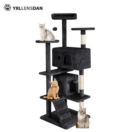 YRLLENSDAN 54 inch Tall Cat Tree Tower for Indoor Cats, Large Cat Tower with Scratching Post, Cat Climbing Tower with Cat Tree House, Sturdy Cat Condo, Dark Gray