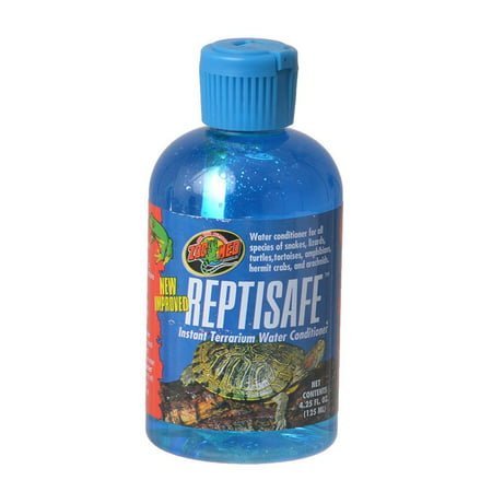 REPTISAFE INSTANT TERRARIUM WATER CONDITIONER Great for reptile water bowls chameleon drip water systems amphibian enclosures and aquatic turtle tanks Removes chloramines and chlorine Detoxifies ammonia and nitrites and provides essential ions and electrolytes which help to hydrate newly acquired animals Stimulates slime coat development in amphibians and fish UPC : 097612840049 Size : 4.25 OUNCE Product Type : Reptile-health Care / Water Conditioners